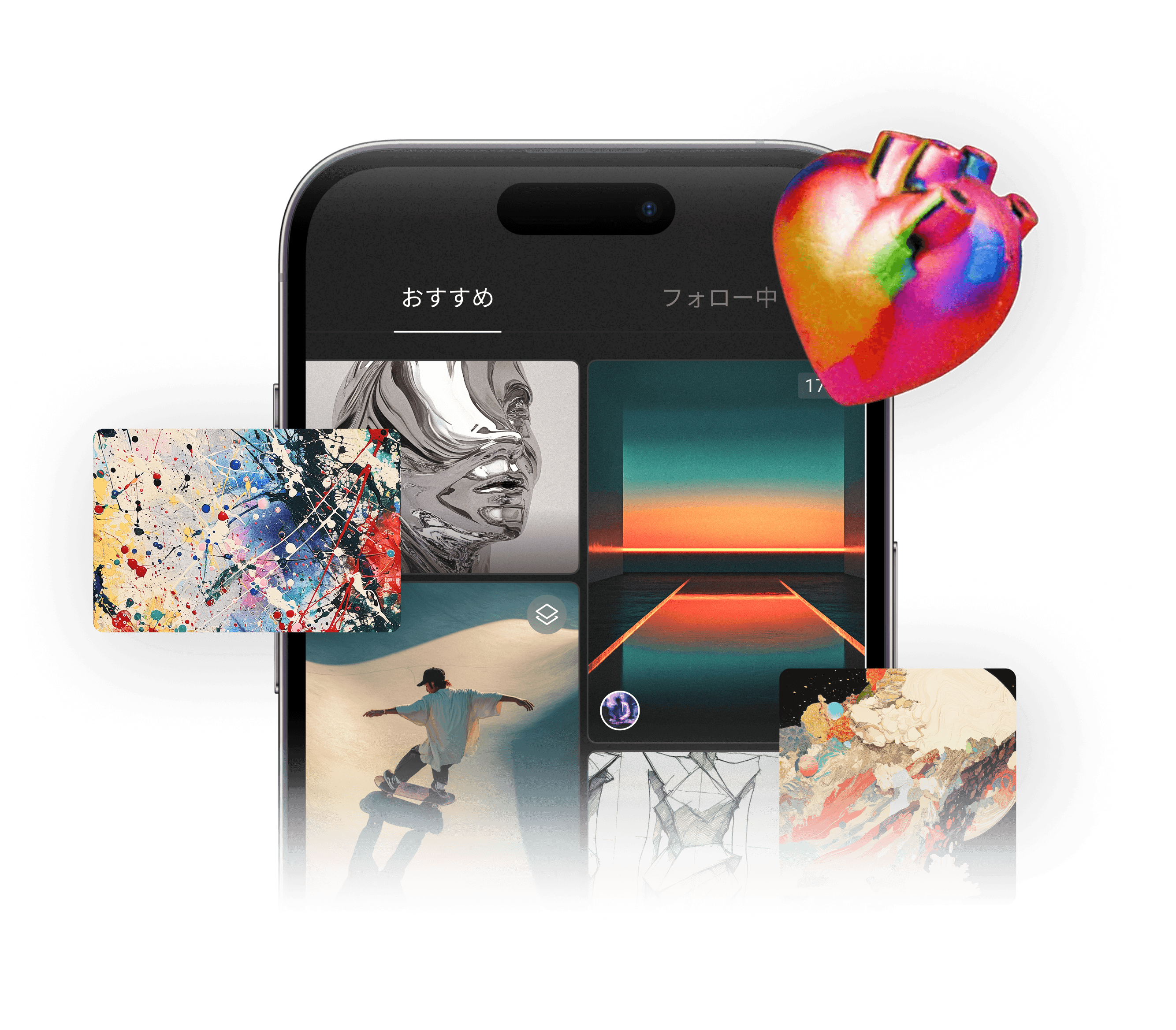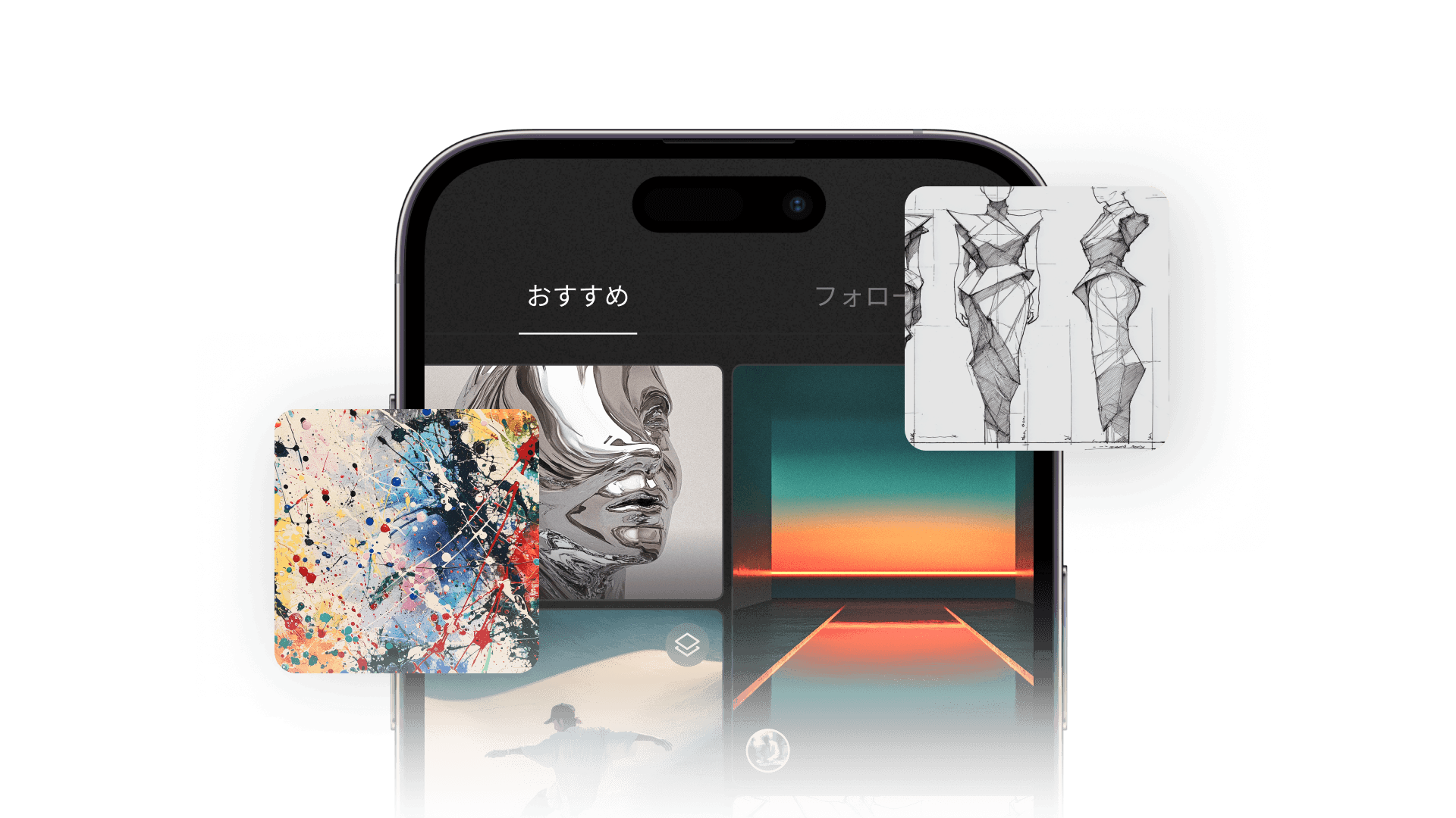 誰でも投稿できる場所ではありません。厳しい基準をクリアした約500名のクリエイターのみが参加。フィードを開いた瞬間、そこは洗練された美術館のような、ノイズのない空間へと変わります。